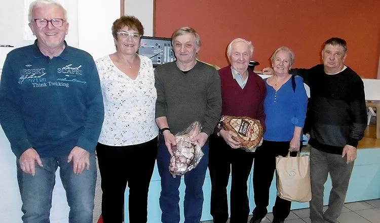 Le premier prix le jambon gagné par Jean Dalex, le deuxième prix le gigot par Armand Golliet, le troisième prix gagné par Monique Girard.