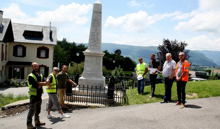 Le mur en pierres actuel situé en aval de la mairie sera démoli et reculé. Le nouveau mur de soutènement en préfabriqué sera habillé d’un parement en pierres de Grésy. Un coût supplémentaire validé par le nouveau conseil municipal mais qui contribuera à mettre en valeur le cœur de notre village. Le monument aux morts sera également déplacé et installé au bout du parking de la salle d’animation en face de la mairie.
