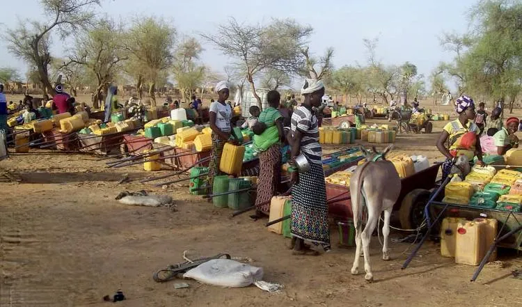 Actuellement, dans le Sahel, en cette fin de saison sèche qui dure neuf mois, la température dépasse les 40° et, il y a une dramatique pénurie d’eau, les ressources locales étant insuffisantes pour satisfaire les besoins les plus élémentaires. L’eau est vendue à des prix tels que de nombreuses familles ne peuvent même plus faire la cuisine. La situation est indescriptible et d’interminables files d’attente se forment autour des points d’approvisionnement en eau.