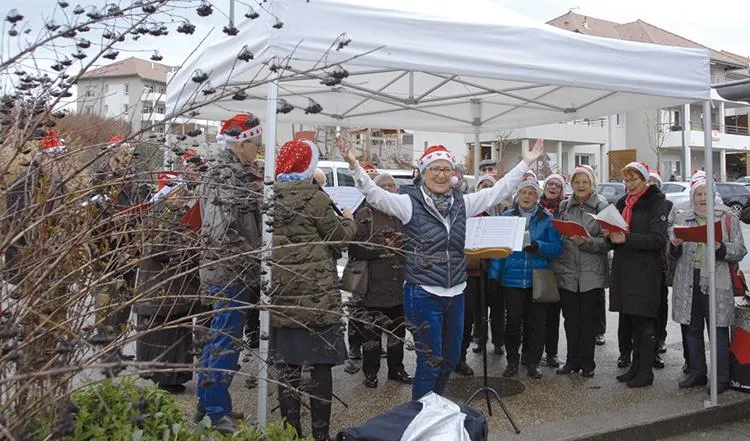 Ce dimanche 23 décembre, dès 11 heures, deux chorales donnaient l’aubade sur la place publique près de "l’Echappée Belle".