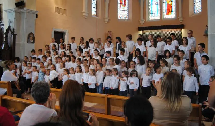 Ce samedi, les écoliers de Vaulx avaient revêtu leur tenue "de soirée" pour présenter leur concert de fin d'année, aboutissement d'un travail d'écoute et d'apprentissage, et d'une tradition vocale dont l'école du village peut être fière. Les plus petits ont mimé leurs chants pleins d'entrain, tandis que les pl