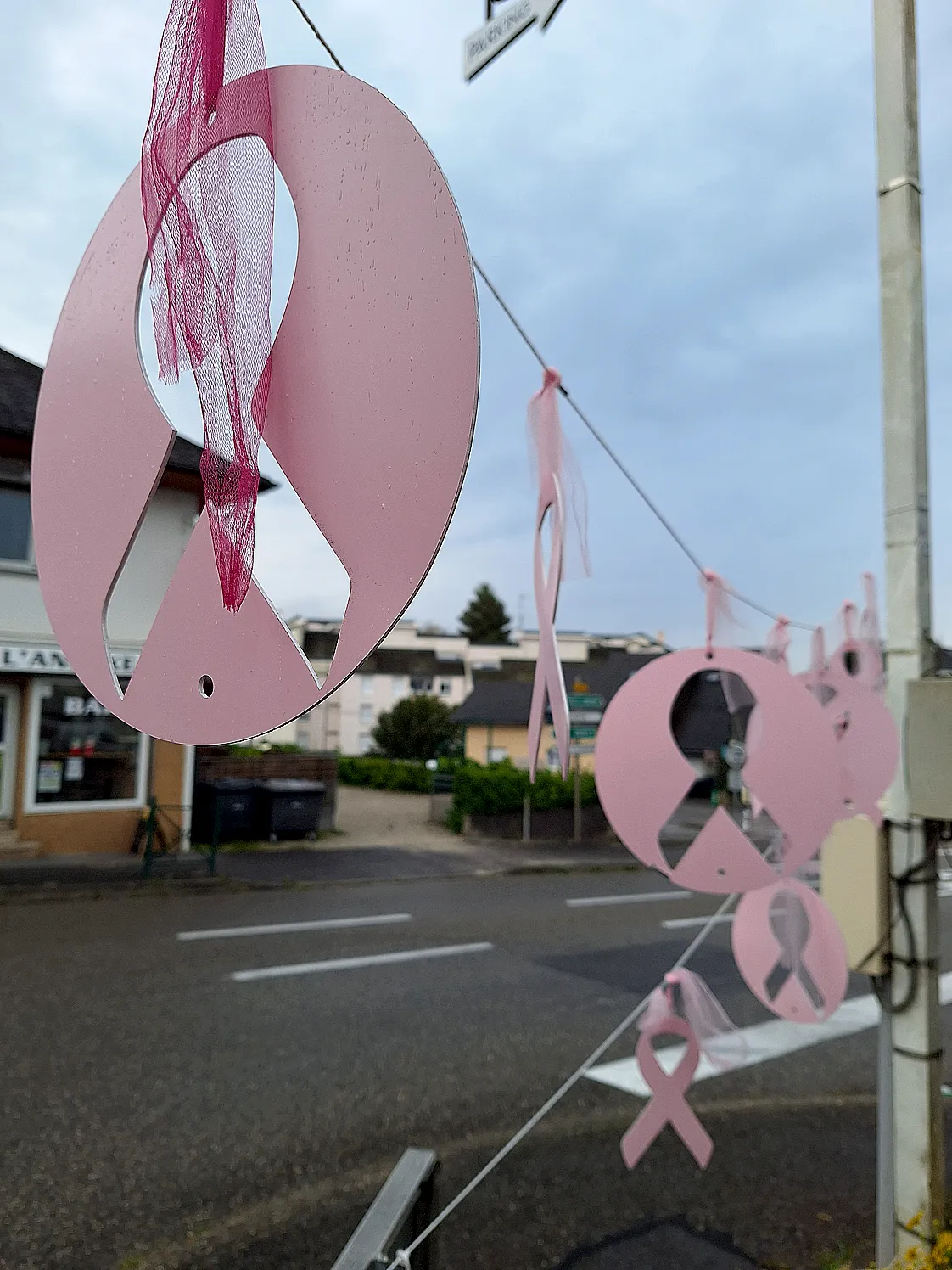 Saint-Félix : des guirlandes à l’effigie du symbole d’Octobre rose, au rond-point du centre village.