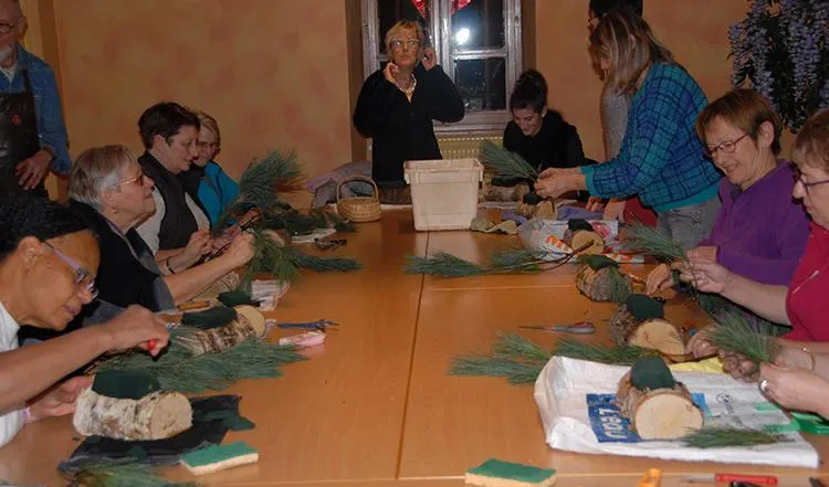 Confectionner un centre de table floral aux couleurs de Noël... tel était l’objectif de quelques membres du Rayon de Soleil et de quelques amis, (les aînées avaient ouvert l’activité à des plus jeunes !) soit 13 dames réunies salle de la mairie à Marigny en cette soirée du mercredi 19décembre.