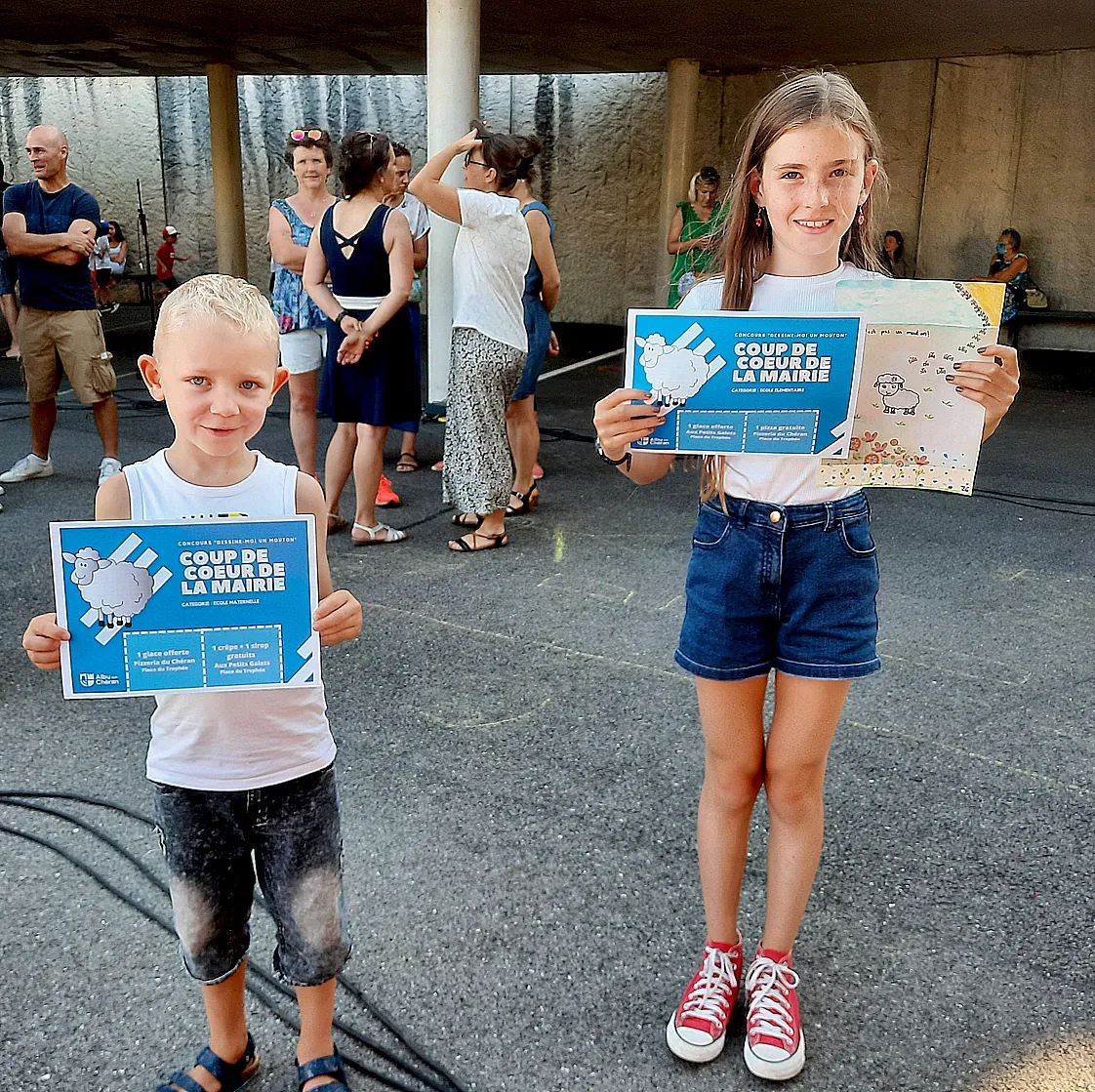 Deux coups de cœur de la mairie, Jules de Grande section et Eva de CM1, pour le concours : «Dessines-moi un mouton».