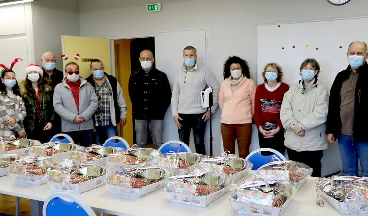 Quelques jours auparavant, les anciens (3 dames et 1 homme) résidant en EHPAD, à Seyssel et Confort, n'avaient bien sûr pas été oubliés et se sont vu remettre leur colis de Noël composé de produits d'hygiène et de soins.