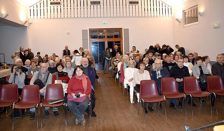 Alors qu’en cuisine on s’affairait à préparer la soupe et le buffet et qu’on percevait le bruit de chaque bouchon de bouteille qui sautait, Gérard Gonthier restait imperturbable, concentré sur son exposé. Il évoquait notamment les finances de la commune «Depuis 28 ans, nous n’avons pas augmenté les impôts communaux et qui plus est, nos résultats financiers en 2018 sont excédentaires. A ce jour, nous n’avons plus qu’un seul emprunt qui se terminera en 2020 avec une dette par habitant de 50 €». Comme les autres maires, il aura un mot sur le PLUI et ses conséquences pour la commune «Trévignin est classée dans la catégorie «villages greniers» avec une population et un nombre de logements figés jusqu’en 2030. Ainsi Trévignin ne pourra recenser plus de 1 030 habitants (800 actuellement) et ne pourra pas accueillir plus de 75 logements nouveaux, et cela jusqu’en 2015. Inutile de s’étendre sur le sujet, on doit faire avec».