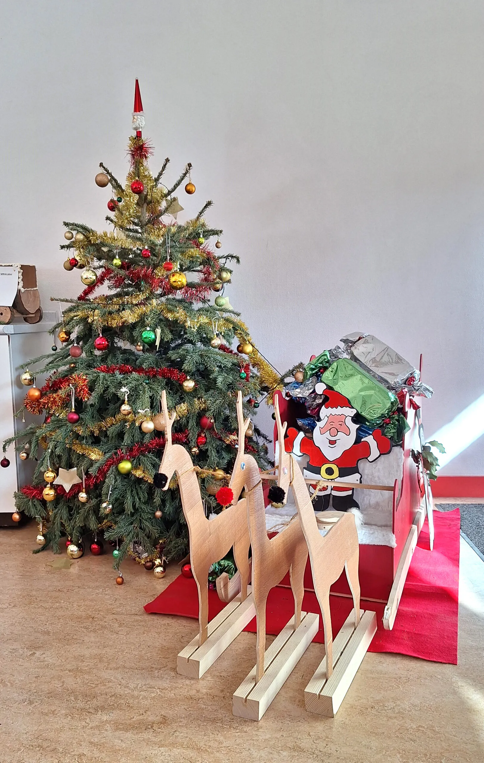 Ces décorations ont été réalisées par Sébastien, parent d’élève et président de l’APE pour le marché de Noël des enfants l’année dernière et cette année. Il a été remercié par Noëlle Delorme et félicité pour son travail d’artiste. (©Florence Milhomme)