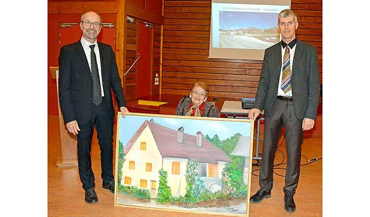 Aimée Georget, artiste peintre, avait, il y a quelques années, réalisé deux œuvres représentant l’Espace Rencontre Favre, avant et après travaux, qu’elle avait déjà à l’époque, généreusement offert à la municipalité.