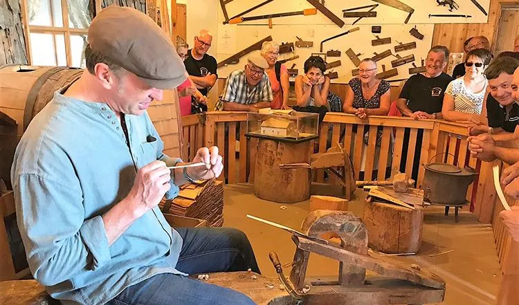 Nous sommes ensuite repartis repus, direction Bois d’amont et son Musée de la Boissellerie. Accueilli, la aussi par un guide aussi sympathique que passionné. Cette visite nous a permis de découvrir à travers le temps et les techniques, le savoir-faire des Hauts-Jurassiens dans la transformation du bois qui va de la petite boite (pouvant contenir des médicaments), à la fabrique des tavaillons, le tout, grâce à des machines entrainer par la force de l’eau. Belle découverte.