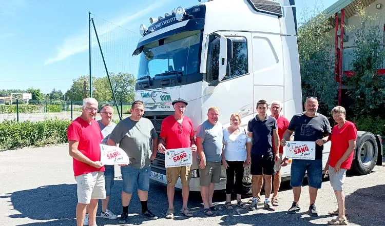À l'issue de la collecte nous avons remis des autocollants pour la promotion du don du sang au transporteur TransCom de Rumilly et son gérant Mr Alain Onfroy.