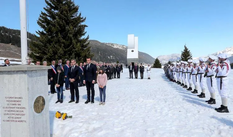 Ponctuée de temps forts en hommage aux résistants des Glières, la cérémonie fut empreinte d’union face au devoir de mémoire. Le poignant hommage à ceux qui ont sacrifié leurs vies pour défendre nos libertés, et qui par leur courage sont devenus l’espoir de tout un peuple, retentit au pied des Glières, porté par les voix des enfants, entonnant le chant des Partisans. Emmanuel Macron a ensuite retracé dans son discours, l’histoire des 465 maquisards menés par le jeune lieutenant du 27ème BCA, Tom Morel, qui par leurs combats ont fait naitre le mouvement de la Résistance en Haute-Savoie, en janvier 1944. « Il y a 75 ans, des héros ont pris les armes pour combattre la milice de Pétain et l’armée d’Hitler (…) En cet hiver 44, la France terrassée, la France occupée, bâillonnée, prouvait au monde qu’elle pouvait encore parler, sur son sol même, la langue de la liberté. Parce qu’ici, dans ce décor comme destiné à être le théâtre d’une épopée à la fois sublime et tragique, quelques centaines d’hommes avaient décidé de se lever. Sans ces hommes qui refusèrent le renoncement, fût-ce au prix des larmes et du sang, sans ces héros de la résistance intérieure qui refusèrent le déshonneur, fût-ce au prix de leur propre vie, la France ne serait pas la France. »