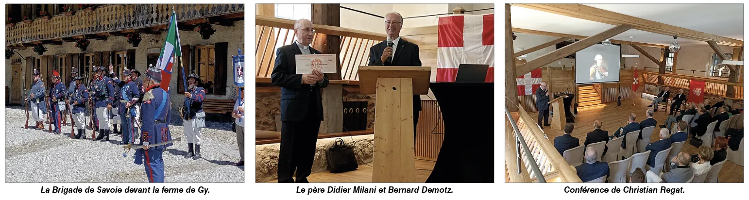 Accueillis par le comte de Chevron Villette, propriétaire des lieux, et le professeur Bernard Demotz, délégué de Savoie des Ordres dynastiques, les participants reçurent les honneurs de la Brigade de Savoie.