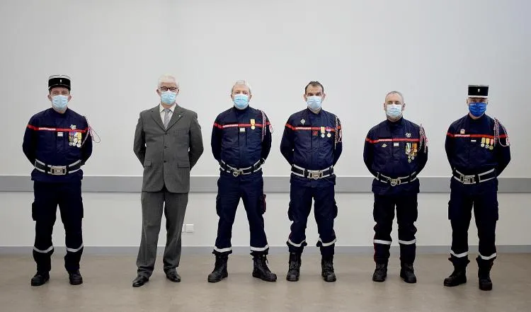 Ce dimanche 7 février la traditionnelle cérémonie annuelle de remise des décorations et galons au Sapeurs-Pompiers volontaires s’est déroulé en comité réduit. Habituellement organisée conjointement à la Saint-Barbe, elle n’a pas, cette année, pu être organisée comme à l’accoutumée.