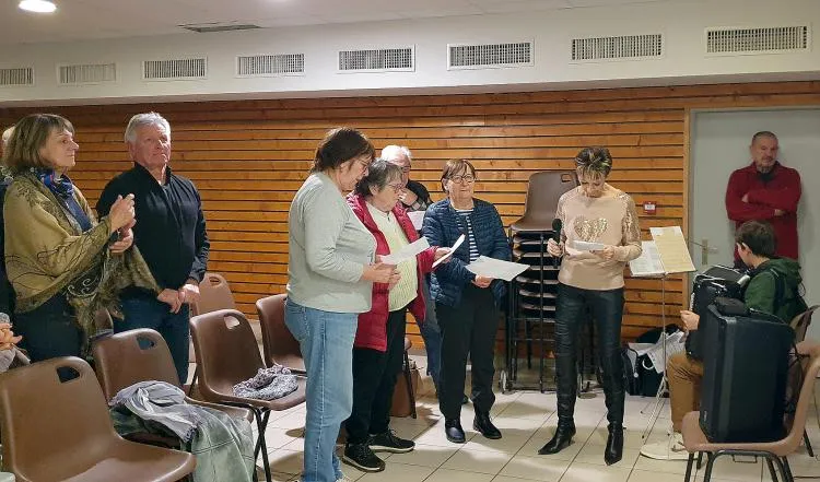Et pour servir de lien entre la partie protocolaire et le temps de convivialité, la salle, debout, et accompagnée par Baptiste et quelques membres de la chorale Choeurs à coeur, a entonné le chant des Allobroges.