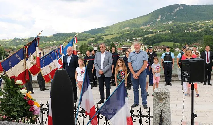 La cérémonie s'est déroulée au monument aux morts de la rive droite en présence des deux maires Michel Botteri et Gilles Pilloux, du maire de Corbonod Joseph Travail, du président du Souvenir Français Michel Lenormand