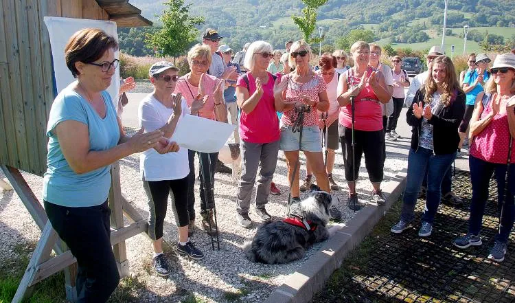 Mercredi après-midi Martine Vibert a inauguré un chemin bleu à Moye. Le chemin bleu, dit-elle, c’est d’abord faire partager simplement un écrin de verdure que bien des communes nous envient, pouvoir se balader, contempler, découvrir de beaux points de vue en famille.
