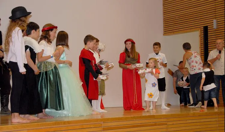 Le public ne ménageait pas ses applaudissements et les petites sections de maternelles, après un petit mot du maire, offraient aux grands qui partent en 6e un dictionnaire et les Fables de La Fontaine, livre offert aux CM2 par le ministre de l’éducation, une opération intitulée "Un livre pour les vacances" 2019. Cette distribution gratuite, a pour but pour de renforcer le goût et la pratique de la lecture chez ces élèves qui quittent l’école primaire.