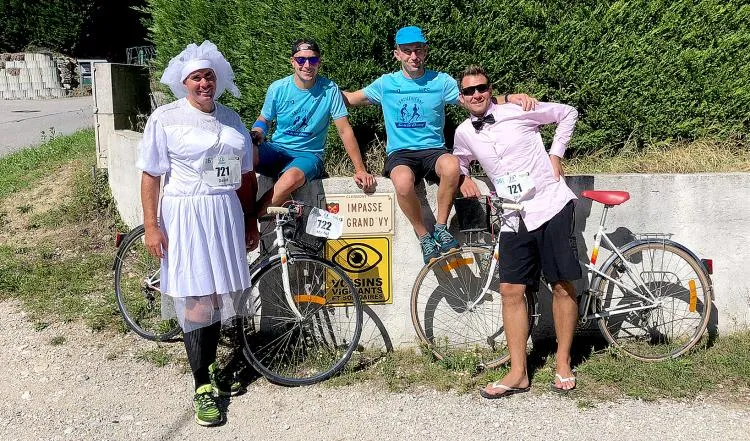 C’est avec beaucoup d’humour que ces habitants de l’impasse de la Grand Vy à Clermont-en-Genevois ont participé à l’Ancilevienne ce dimanche. «Les Mariés de la Grand Vy» ont courageusement couru et pédalé sur 46 km autour du Lac d’Annecy ! Deux équipes en relais solidaire pour soutenir l’Arche et les Semeurs de Joie. Bravo à Martial Ciclet / Matthieu Nicod arrivés en 482ème position (3h47 min) et David Viviant / Jack Portaz arrivés en 510ème position (3h52 minutes).