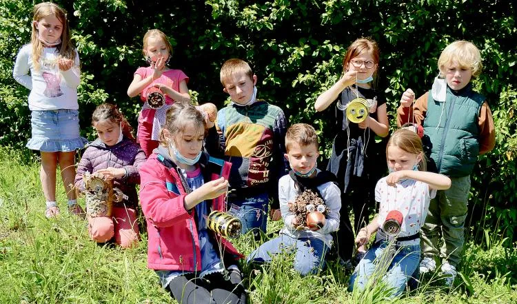Promeneurs, si vous passez en haut de l’école, vous trouverez peut-être tapis sur le pré, enroulés autour d’un tronc, pendus aux branches d’une haie des objets colorés mais inanimés, objets qui sont l’âme même de ce «remue-méninges». Merci à toute l’équipe de la coccinelle aux “Trois P’tits Points” pour son initiative et bravo aux artistes en herbe pour leur imagination et leur implication «nature» : faites la fête à la nature, elle est si belle et si bien faite !
