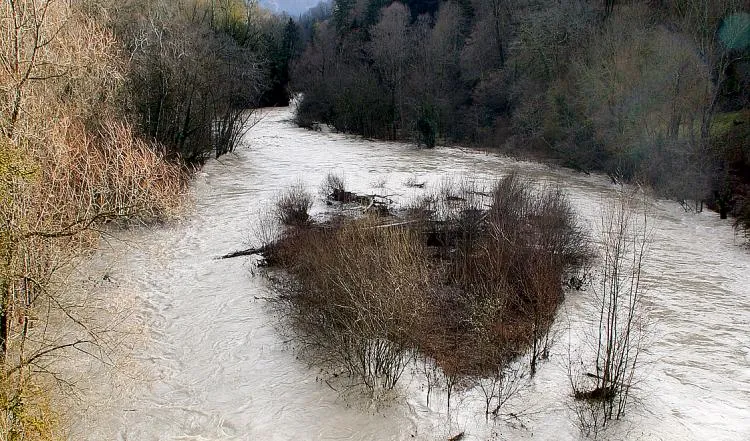 Avec les pluies diluviennes de ces derniers jours, le Chéran s'est déchaîné dans le Pays d'Alby, et roulait beaucoup d'eau. La remontée des températures favorisant la fonte des neiges en altitude a, elle aussi, favorisé la montée des eaux.