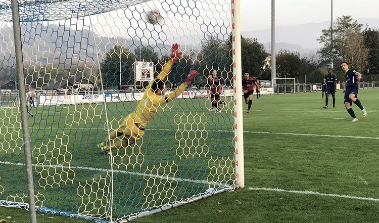Prouver que l’élimination subie le week-end précédent en coupe de France à Valence (1-3) n’était qu’un accident, et repartir tout de suite de l’avant. Telles étaient les motivations du GFA Rumilly Vallières à l’heure de recevoir ce samedi aux Grangettes la réserve du Clermont Foot. Et le moins que l’on puisse dire, c’est que le groupe de Fatsah Amghar a plus que répondu présent. Il ne fallait d’ailleurs pas arriver en retard puisque dès la première minute de jeu, les bleus prenaient l’avantage. Sur une touche côté droit, Jean-Manuel Ribeiro servait Nikola Volic qui se retournait avant de passer en force et d’armer du gauche. Sa frappe heurtait la barre avant de rentrer dans le but de Patron (1-0, 1e). Les Bleus maintenaient la pression, et sur un contre, Elias Nadama s’emmenait le ballon et obligeait un défenseur visiteur à toucher le ballon de la main dans la surface. M. Saadi indiquait logiquement le point de penalty et Jimmy Déchêne, en force, trouvait la lucarne (2-0, 9e). Les visiteurs mettaient alors le pied sur le ballon, et à force de pousser, réduisaient la marque. A l’origine, un corner tiré au second poteau, et Magnin bénéficiait d’une bonne remise pour prolonger le ballon dans le but de Santos (2-1, 21e).