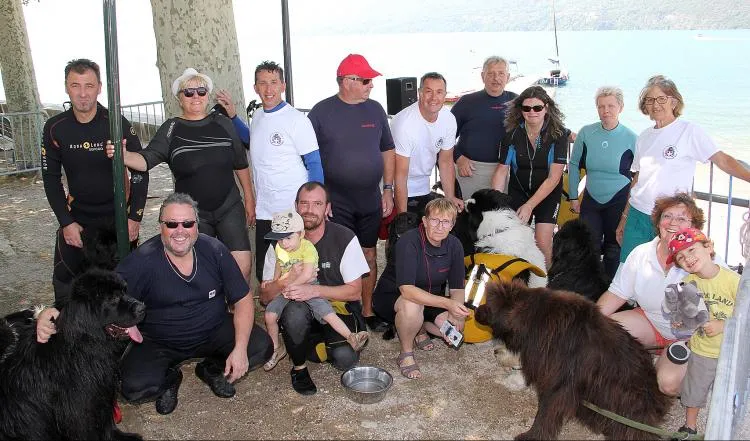 Dans le lac, ce sont en revanche les chiens de Terre-neuve qui avaient la vedette dimanche au cours de démonstrations de sauvetage aquatique par l'Amicale savoyarde du Terre-neuve. «Les chiens sont entraînés au sol et dans l'eau de mars à octobre et prennent part à de nombreuses démonstrations, notre but étant de faire reconnaître son utilité publique pour le sauvetage aquatique, ce qui n'est pas encore d'actualité en France contrairement à l'Italie» commentait Edwige Orso, présidente de l'ASTN, avant d'ajouter «il faut compter deux années pour que les chiens de Terre-neuve, assez têtus, soient prêts à intervenir, eux pour qui le poids n'est pas un problème puisqu'ils peuvent très bien tirer dans l'eau jusqu'à plusieurs personnes à la fois». Pour retrouver ces attachantes boules de poil dans les semaines à venir, rendez-vous le 15 août à la Traversée du lac d'Annecy, l'Amicale complétant le dispositif de surveillance prévu par l'organisation aux côtés des pompiers et des gendarmes.