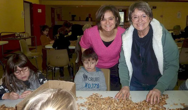 Les maternelles de l’école des Ires et les adhérents du club du Chatenet, se sont retrouvés jeudi 1er février à la salle Gilbert Clerc-Renaud pour grommailler. Les petits écoliers ont pris place sur les deux premières tables avec les aînés. Quelques-uns ont retrouvé leur mamie. Même avec leurs petites mains, ils ont réussi à extraire les cerneaux des noix qui avaient été préalablement concassées. Les enfants ont poursuivi leur activité jusque vers 10h15, ensuite les membres du club leur avaient préparé un petit goûter. Une expérience à renouveler car petits et grands étaient contents d’être ensemble.