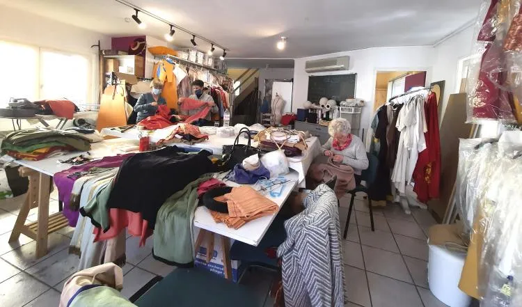 Elles sont une dizaine de couturières bénévoles à s’impliquer dans la fabrication du costume médiéval. Pour respecter le protocole sanitaire mis en place au vu de la pandémie, elles se retrouvent au nombre de quatre, à tour de rôle, le samedi dans leur petit local.