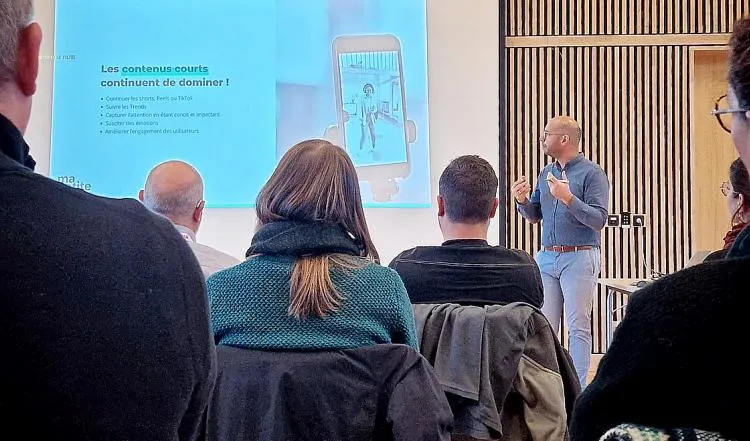 Facebook, Instagram, TikTok, YouTube, LinkedIn… nombreuses sont les plateformes à investir afin de parfaire sa communication d’entreprise. Quel réseau choisir pour toucher sa clientèle ? Quels outils utiliser pour gagner du temps ? Quels contenus diffuser ? Autant de questions qui ont su trouver réponse auprès d’Alexandre Georges, fondateur de l’agence de communication digitale Ma Petite Com’, membre du CAE et du CAE Business Club. «Vos clients recherchent de l’authenticité dans vos publications» conseille-t-il aux 25 chefs d’entreprises réunis de bonne heure ce vendredi 9 février à l’Espace panoramique de Sales.