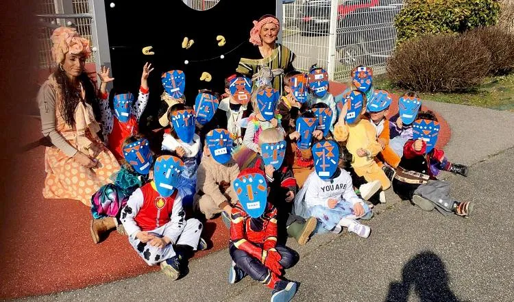 Pour terminer la semaine en douceur, les élèves de l’école des Ires ont eu le droit de venir vendredi déguisé. Chacun avait revêtu un costume, princesse, batman, pirate etc… Ils ont pu déambuler dans la cour, tous ensemble, sans masque, un exploit sachant que depuis plusieurs mois, les classes étaient séparées. Les enfants de maternelle avaient confectionné des masques africains, un clin d’œil à leur projet pédagogique. Depuis la rentrée, grâce aux photos de Juliette, la fille de leur maitresse, qui fait un périple en Afrique, il découvre chaque jour ce magnifique pays. La maitresse Marie-Agnès et l’atsem Laurence, avaient également la tenue adéquate. L’après-midi, tous les élèves se sont retrouvés dans la salle de motricité pour danser et manger des bonbons.