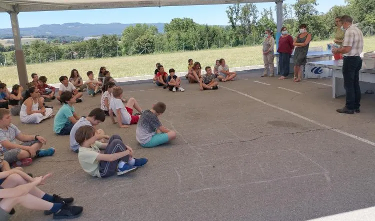 En effet, ce sont 34 élèves du cours de CM2, qui ont reçu des mains de Mr Alain Bauquis, maire de la commune, le traditionnel cadeau de fin d'année avant le passage en 6ème. Le maire était accompagné de Mr Paul Méline, son adjoint chargé de la scolarité. Les enfants se sont vu offrir un dictionnaire d'anglais-français, et un livre sur la citoyenneté, de fin d'études du cycle élémentaire.