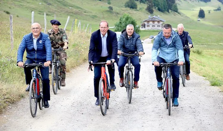 Jeudi 16 juillet, Christian Monteil, Président du Département de la Haute- Savoie a accueilli Christian Prudhomme, Directeur du Tour de France et Bernard Thévenet, double vainqueur du Tour, sur le Plateau des Glières, aux côtés de nombreuses personnalités et élus locaux. Date symbolique s’il en est, c’est exactement le jour où le tour aurait dû passer par le Plateau si le calendrier n’avait pas été chamboulé.
