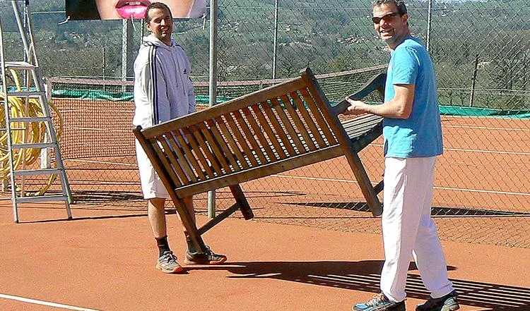 Profitant de ce beau temps radieux, les membres du bureau se sont activés, non sans ménager leur peine, pour remettre en état les courts en terre battue du tennis ainsi que l'ensemble de l'infrastructure sportive.