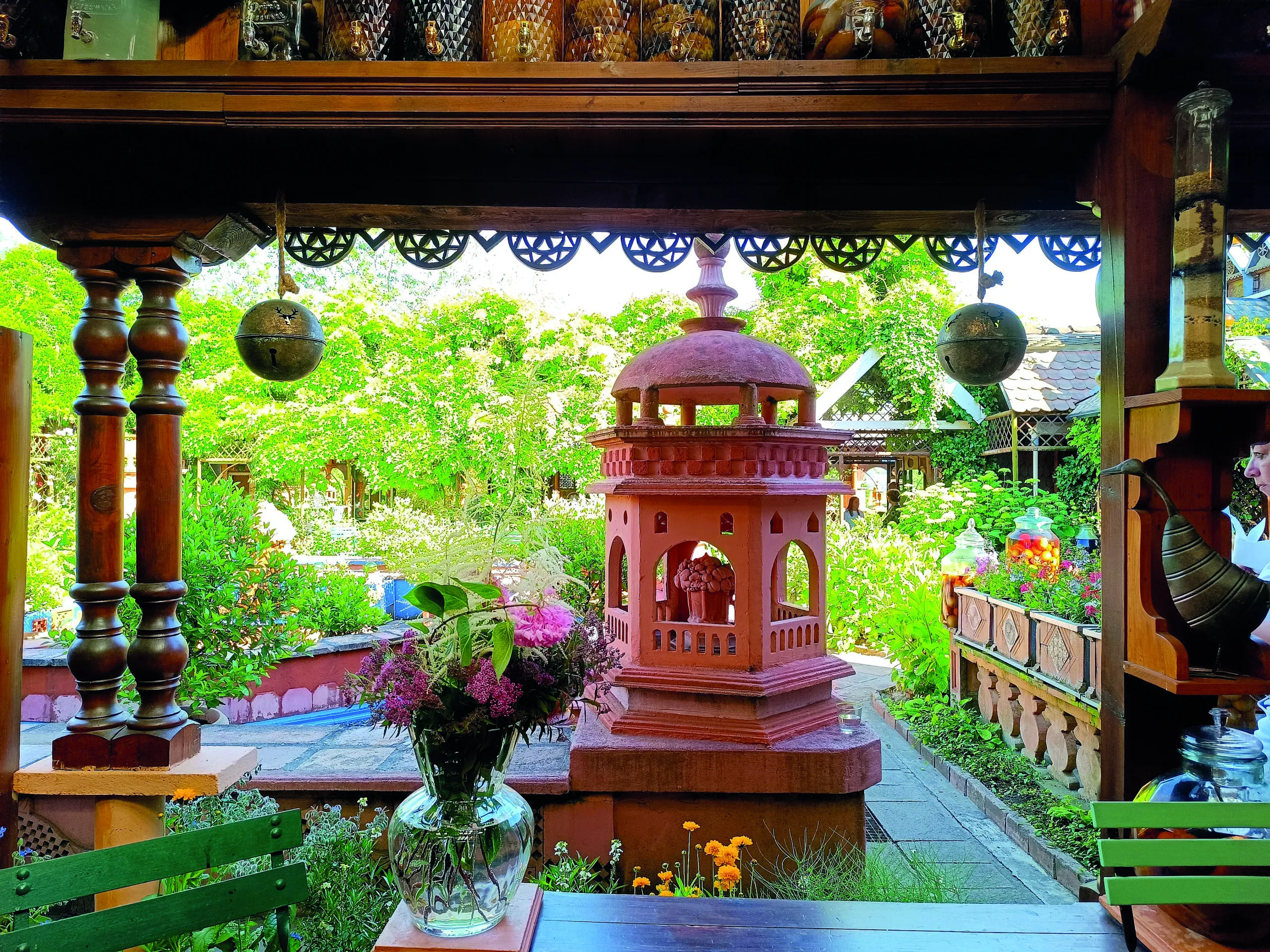 Ce lieu florissant, qui compte 25 espaces intérieurs et extérieurs (jardins, patios, salons ouverts sur la nature, galeries, tonnelles, bassins, fontaines…) constituant un ensemble aux influences variées (andalouses, autrichiennes, indiennes, savoyardes, suisses, tunisiennes), a accueilli l’année dernière 45 000 visiteurs.