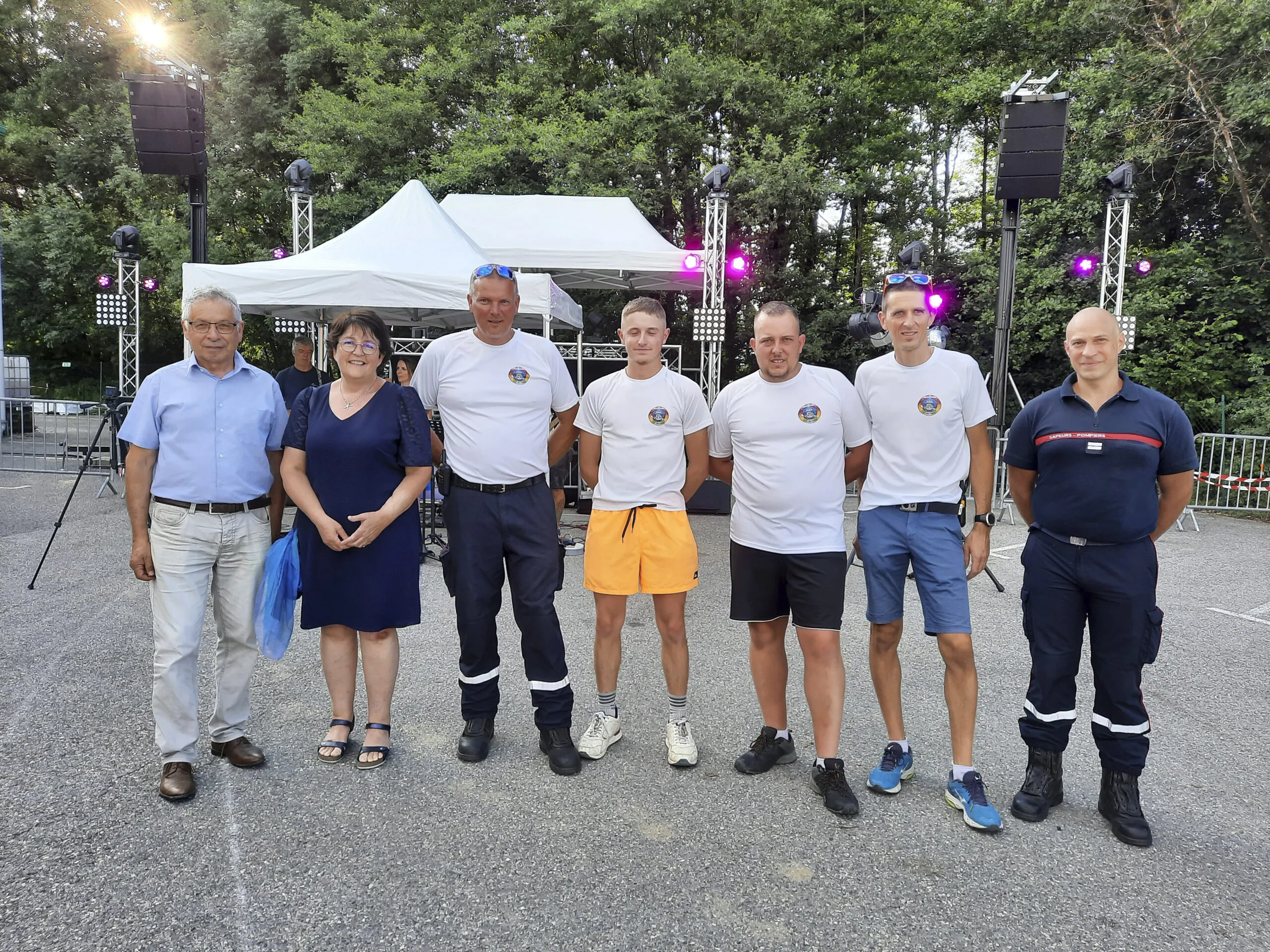 Jean-Claude Martin, maire d'Alby-sur-Chéran, Fabienne Duliège, conseillère départementale étaient au côté du président de l'Amicale, Pascal Laperrousaz, avec trois sapeurs et Julien Thévenon lieutenant.