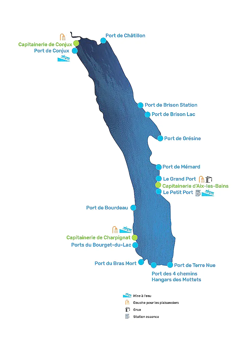 Les différents ports sur le lac. (©Service Communication de Grand Lac)