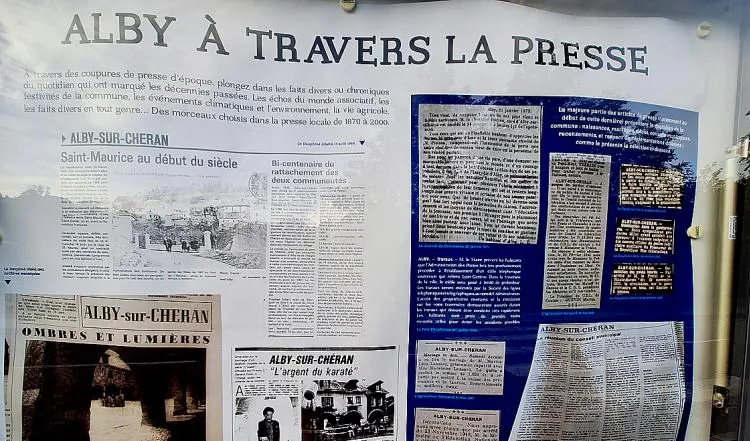 Une exposition, dans les vitrines situées route de Plaimpalais, retrace Alby dans la presse, de 1870 à 2000.