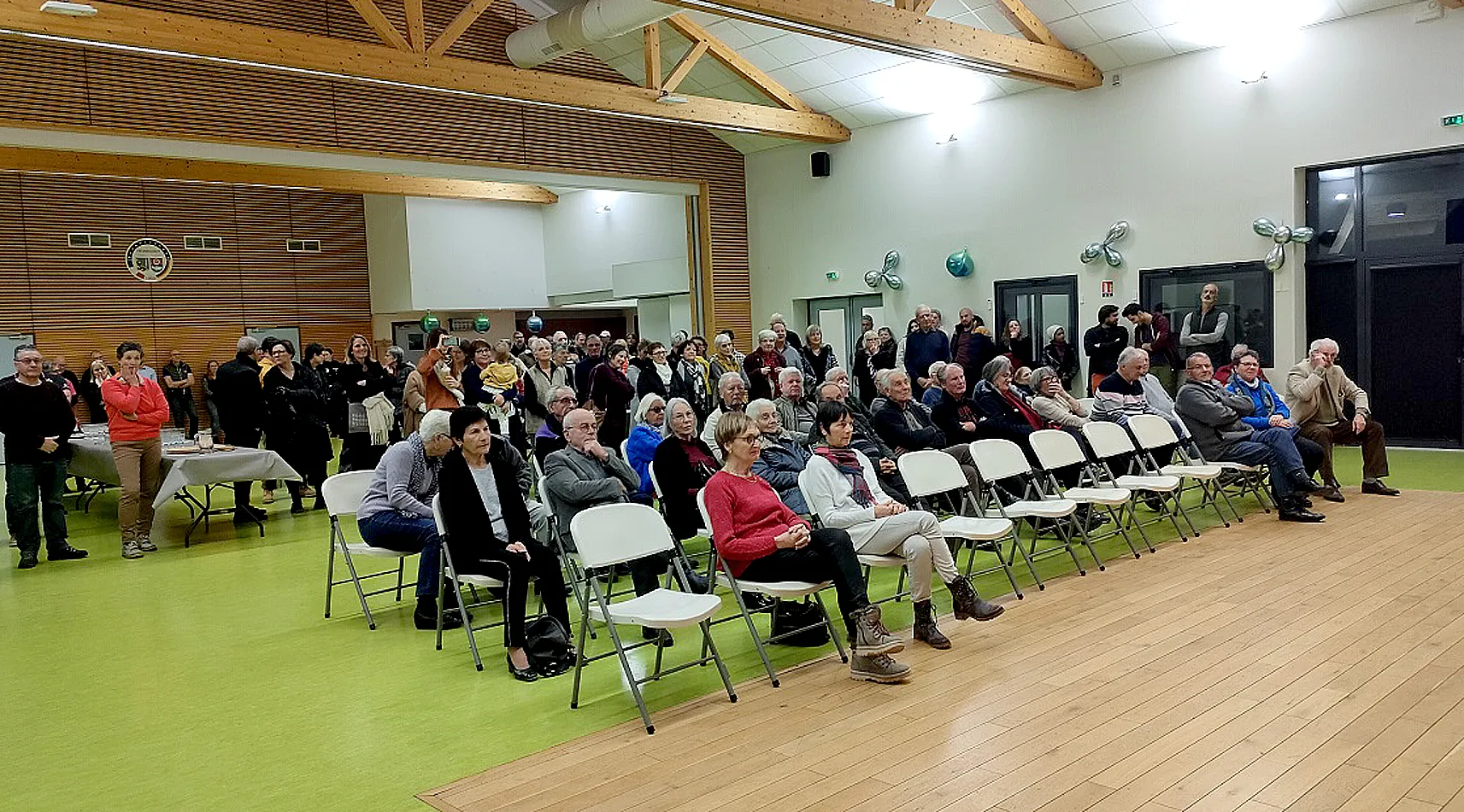 Le maire a accueilli individuellement les habitants dès leur arrivée. Beaucoup d’entre eux se connaissent, l’heure était donc aux retrouvailles dans une ambiance joyeuse. Embrassades, accolades, poignées de main chaleureuses et sourires radieux étaient au rendez-vous, tel un pied-de-nez à ces 2 années difficiles.