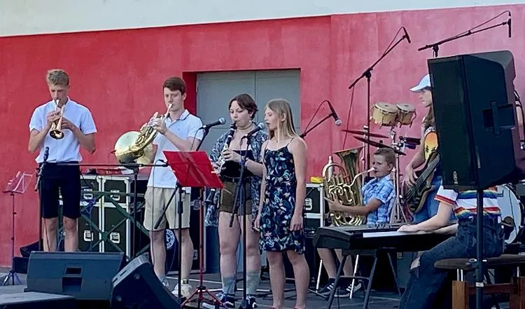En première partie de soirée les jeunes pousses des écoles de musiques de Cruseilles, Frangy et Rumilly se sont produites place Claude Metendier en interprétant des musiques modernes amplifiées.