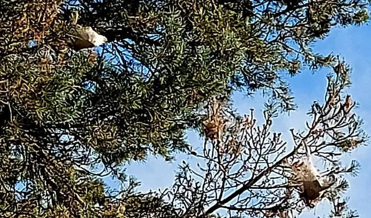 Pour information : Les chenilles processionnaires du pin sont des insectes qui vivent en colonie sur ces arbres. On les surnomme ainsi car elles se déplacent en file indienne. Leur prolifération peut provoquer un affaiblissement des arbres.