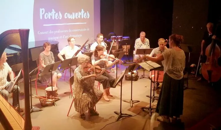 Outre l’éveil musical, la formation musicale et théâtrale, le chant, voici la liste des instruments enseignés : flûte traversière, flûte à bec, hautbois, clarinette, basson, saxophone, trompette, cor, trombone, tuba, percussions, violon, alto, violoncelle, contrebasse, clavecin, piano, harpe, guitare, basse électrique.