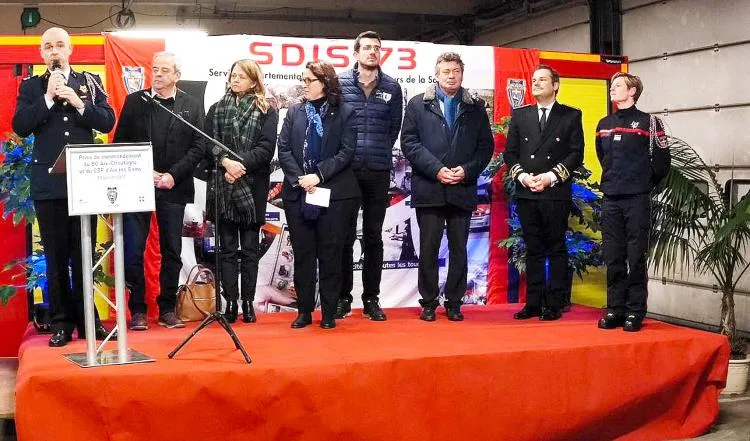 La cérémonie de prise de commandement a débuté avec la Marseillaise et les honneurs au drapeau, rendu par l’ensemble des autorités, puis le colonel Fabrice Terrien, Chef du Corps des sapeurs-pompiers de la Savoie a effectué la revue des troupes, en compagnie de Mr Ludovic Trautmann, de Mr André Pointet. Puis est venue le temps des décorations, tant pour la carrière que pour des actions considérées comme émérites. Mr Ludovic Trautmann, a ensuite lu le discours du ministre de l’Intérieur pour la Ste Barbe, qui salue “une géographie du courage et de la fraternité. En 2023, les sapeurs-pompiers ont été exemplaires dans la mobilisation, l’adaptation, l’abnégation dans des circonstances souvent dégradées, parfois dangereuses, toujours périlleuses. Servir au péril de sa vie, voilà le coeur de votre mission, de votre vocation. Vous êtes aussi les premiers témoins, des effets dévastateurs du dérèglement climatique, notamment de ces feux immenses en France, au Canada, en Espagne, en Grèce, l’été 2023 a été terrible.” Puis s’est effectué la prise de commandement par la commandante Tatiana Cauvas. Pour clôturer cette cérémonie, des lettres de félicitations ont été remises à plusieurs sapeurs-pompiers.