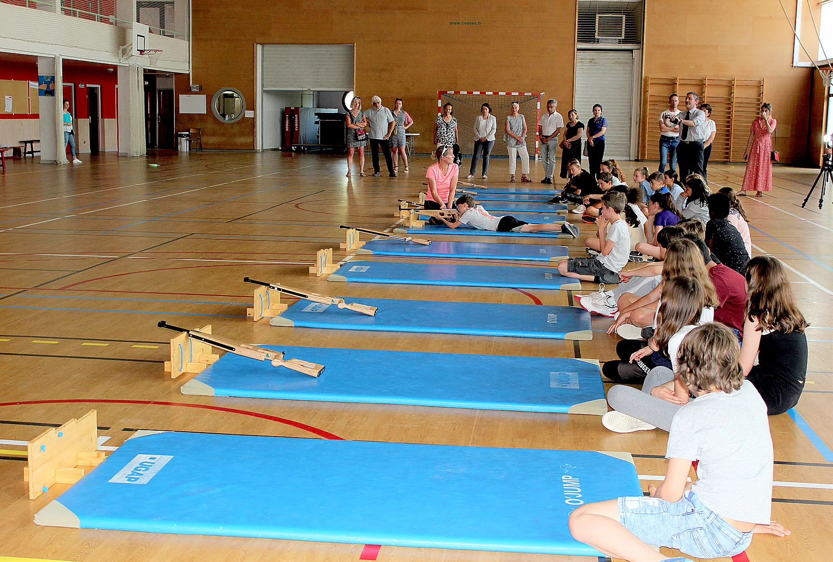 Le cycle est prévu sur 6 séances de 2 heures chacune. Ce premier entraînement avait vocation à permettre aux élèves de prendre en main le matériel pour se familiariser au tir laser dans un gymnase, avec des cibles positionnées à 10 mètres, avant d’effectuer des parcours «courses et tirs» en extérieur.