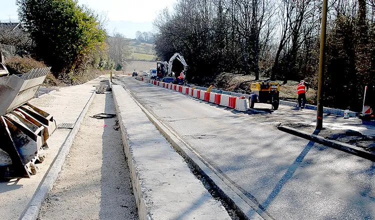 La fameuse déviation dont on parle depuis des décennies n’étant plus d’actualité, la commune, maître d’ouvrage, a décidé de sécuriser les déplacements par la création de trottoirs, de modes doux permettant aux enfants, aux personnes à mobilité réduite, aux personnes âgées, aux personnes chargées, aux livreurs, aux professionnels, aux touristes et finalement à chacun d’entre nous, selon les moments et les circonstances, d’effectuer des déplacements de proximité ainsi que de transporter des objets. Quant à la route qui mène à la salle des fêtes, elle avait tendance à s’affaisser, un important mur de soutènement a été construit, et surtout des trottoirs. S’ajoutent aussi des travaux de rénovation des différents réseaux déjà enfouis, comme l’eau potable financé par la Communauté de commune de Rumilly.. Pas de rond-point, les feux demeurent.
