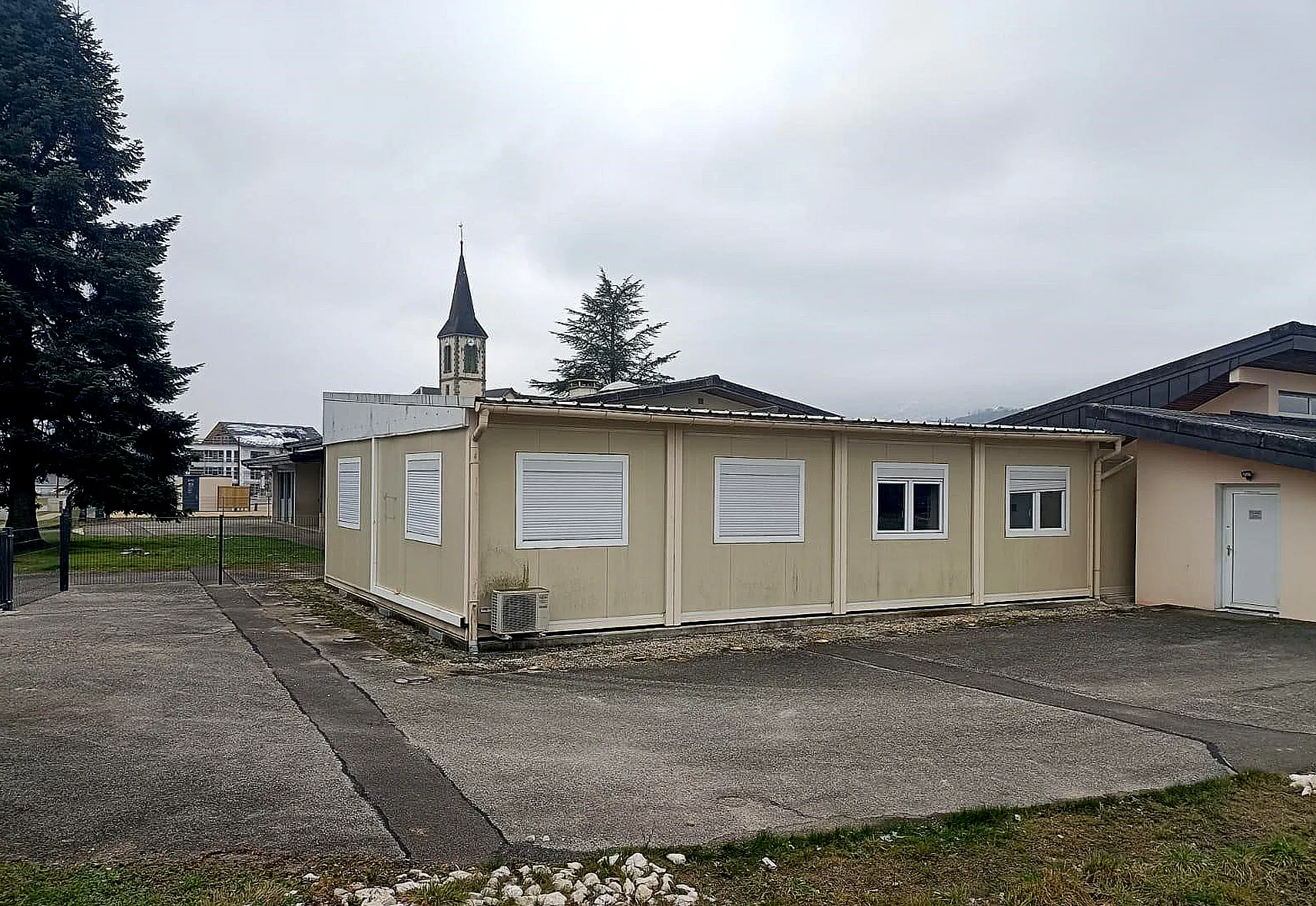 Les équipements modulaires n’étant plus utilisés, il a été décidé de les enlever. La municipalité a trouvé une entreprise intéressée par leur reprise. Après quelques travaux nécessaires (démontage des installations intérieures spécifiques et de la structure métallique les entourant), ils ont pu être enlevés et récupérés. Ainsi recyclés, ils vivent une deuxième vie, et le coût de leur retrait est moindre pour la commune… solution idéale s’il en est.