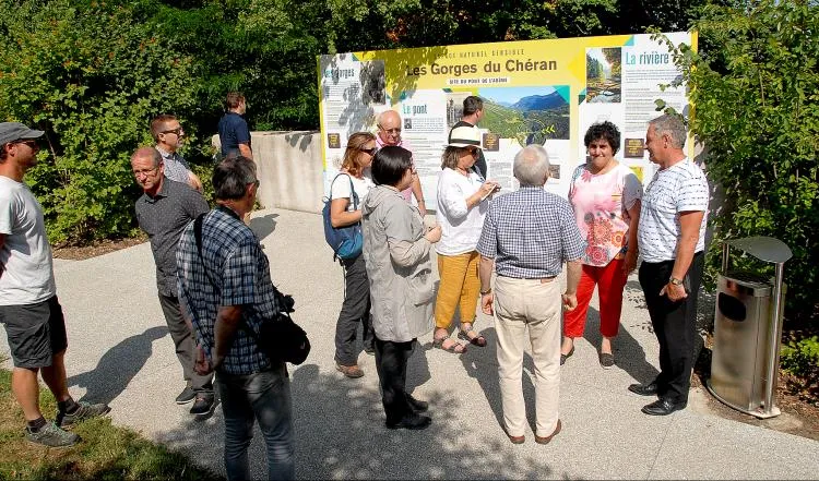 Les experts présents ce jeudi 18 juillet à 10h10 au Pont de l'Abîme, étaient reçus par  une délégation du Parc des Bauges, dont Jean François Lopez directeur adjoint chargé de mission patrimoine naturel et Carole Vanesse chargée de la communication au Parc, et aussi Marie Luce Perdrix maire de Gruffy et vice présidente du Grand Annecy, Serge Petit maire de Cusy et président du SMIAC (Syndicat Mixte Interdépartemental d’Aménagement du Chéran), Bruno Grand chef du service de l’Environnement au CD, Marcel Verney, aujourd’hui président de la transition énergétique du Parc, Fabien Oblea Membre du Conseil scientifique du Parc, Romuald Robert président du musée d’Histoire naturelle, des élus de plusieurs conseils municipaux.