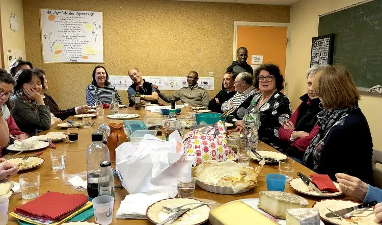 Le doyenné d’Aix-les-Bains est composé de 5 paroisses : la paroisse des 12 apôtres, celles de saint François de Sales, de sainte Jeanne de Chantal, de sainte Marie en Chautagne et de saint Bernard de Menthon en Bauges. Le père Vincent Coutin en est le curé doyen, c'est-à-dire coordonateur de la pastorale. Le 4 février il réunissait les équipes d’animation pastorale des cinq paroisses au vieux moulin. Pour mieux faire connaissance chaque paroisse était invitée à partager trois joies et un défi. Parmi les joies on a noté le nombre croissant d’adultes qui demandent le baptême, la confirmation et l’eucharistie, la joie d’avoir des prêtres dans nos paroisses ainsi que des équipes d’animation. Le grand défi qui est apparu est le manque de communication entre les paroisses pour s’épauler les uns les autres. La matinée s’est poursuivie par la réflexion sur un texte d’évangile et s’est terminée par un joyeux repas partagé qui est toujours un grand moment d’échanges et de convivialité.