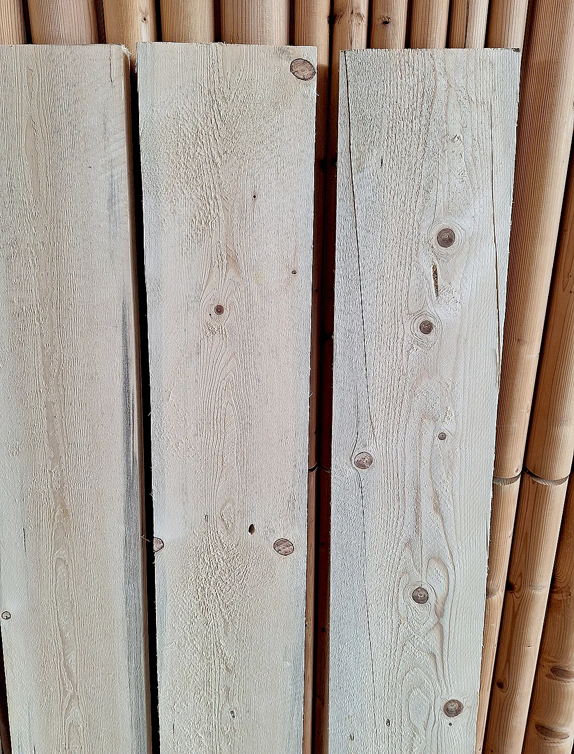 «Le bois bleu», planches de bois ayant subi les assauts des scolytes. (à gauche elles peuvent être utilisées dans la construction, mais à droite, crevassée elle part en déchet pour d’autres utilisations).