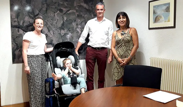L'adjointe au Maire, Catherine Rabasso a reçu, en mairie, Laurie RAVOIRE, présidente de l'association 1 MIL'LYA, créée en août dernier, accompagnée de son papa et de Lya, jeune Salésienne de 2 ans, atteinte d'hémiplégie alternante (mutation du gène ATP1A3), une maladie neurologique rare et grave.