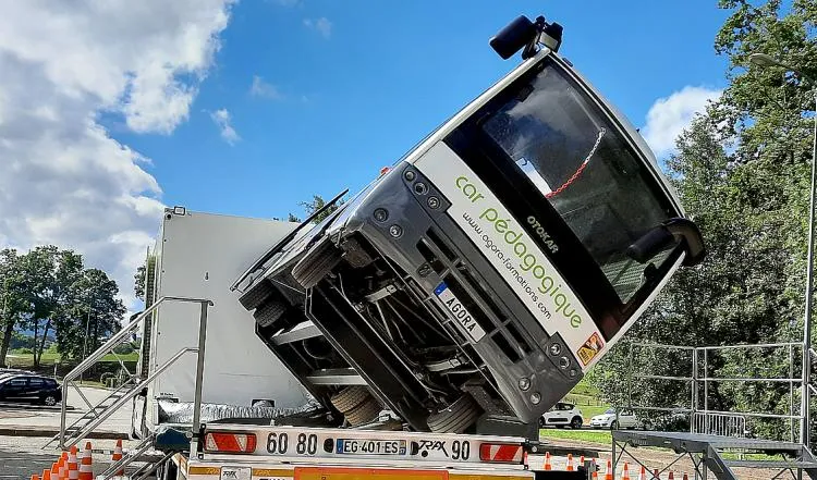 Une séance de sensibilisation en situation réelle de 20 minutes, lors d'une simulation d'accident, avec l'aide d'un car pédagogique.